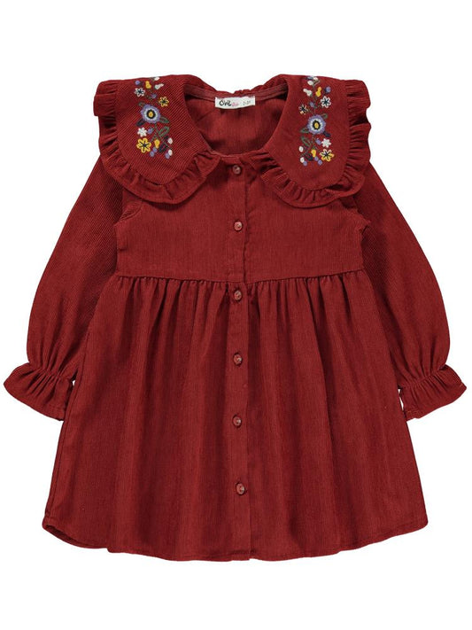 Civil girls yaka nakışlı 2-5 yaş elbise - turuncu