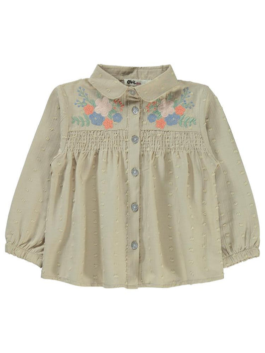 Civil girls çiçek nakışlı 2-5 yaş gömlek - bej