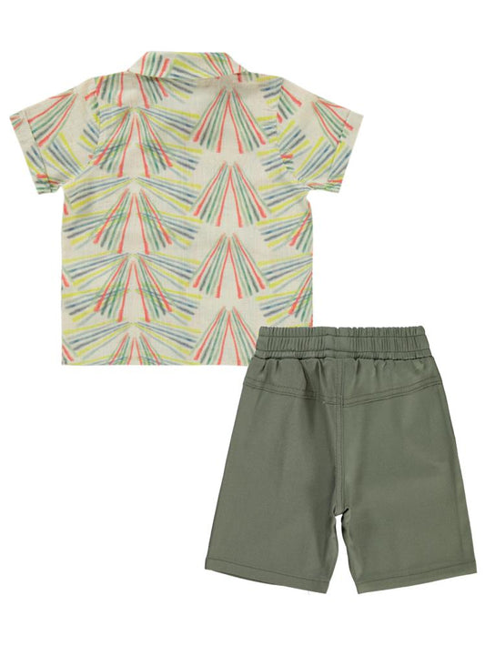 Civil boys baskılı gömlekli kaprili 2-5 yaş takım - haki