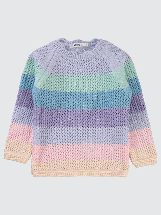 Civil girls renkli çizgili 2-5 yaş kazak - lila