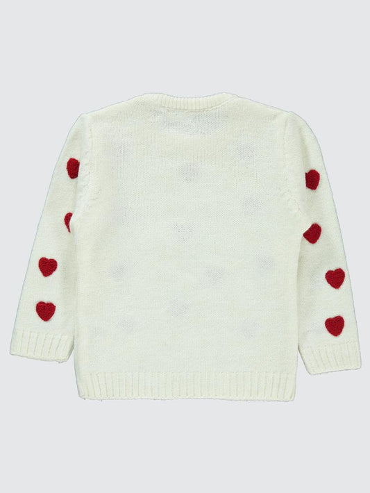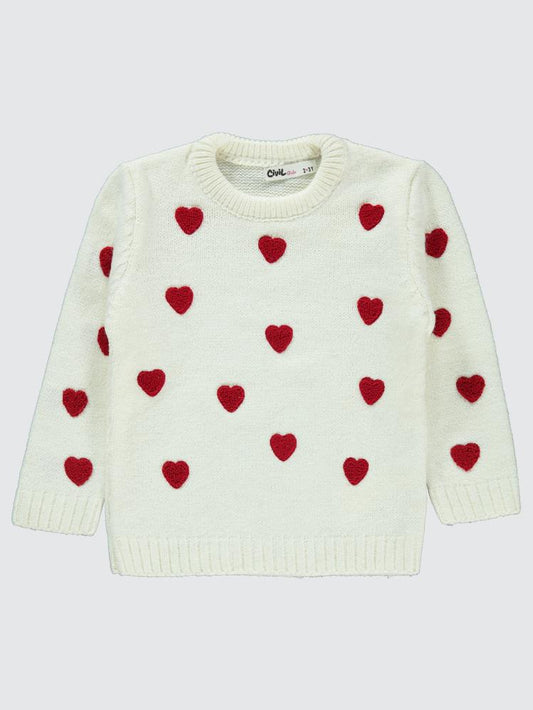 Civil girls süzene kalp nakışlı 2-5 yaş kazak - ekru