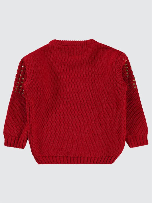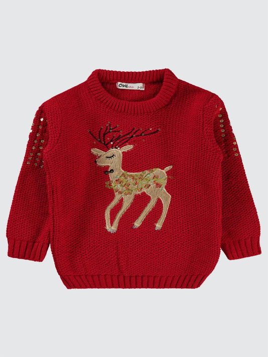 Civil girls geyik nakışlı 2-5 yaş kazak - kırmızı
