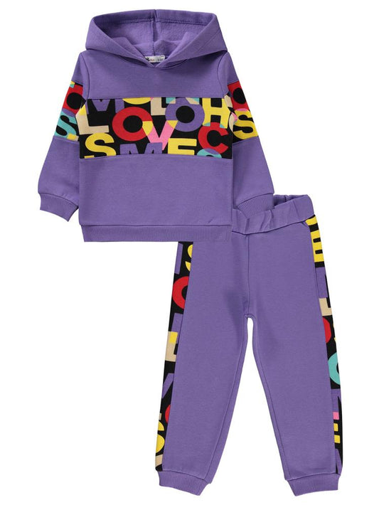 Civil girls harfler empirme garnili 2-5 yaş eşofman takımı - lila