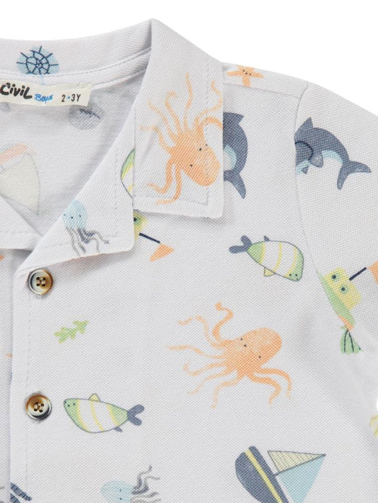 Civil boys ahtapot yelkenli baskılı 2-5 yaş gömlek - beyaz