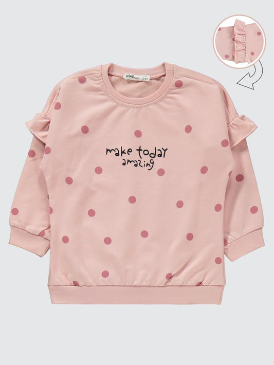 Civil girls puan desenli kolu fırfırlı 2-5 yaş eşofman takımı - pudra