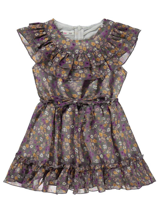 Civil girls çiçek desenli 2-5 yaş elbise - lila