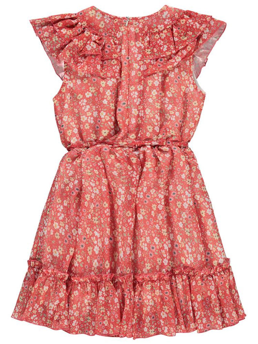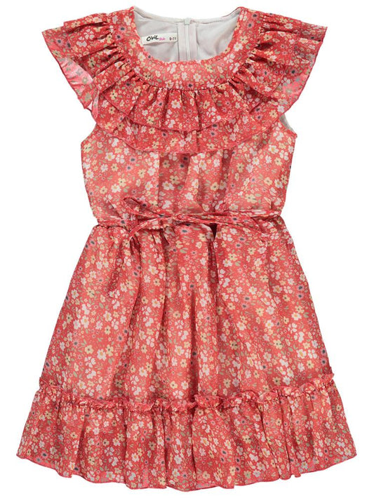 Civil girls çiçek desenli 6-9 yaş elbise - kırmızı