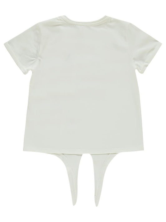 Civil girls çiçek nakışlı 6-9 yaş tişört - ekru