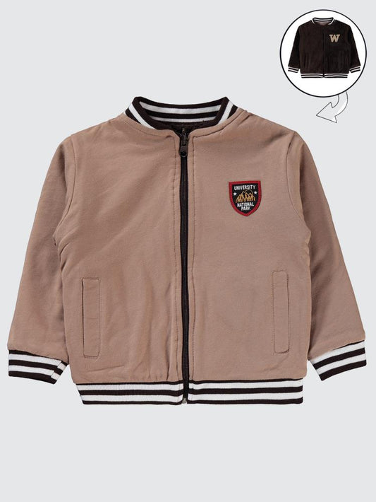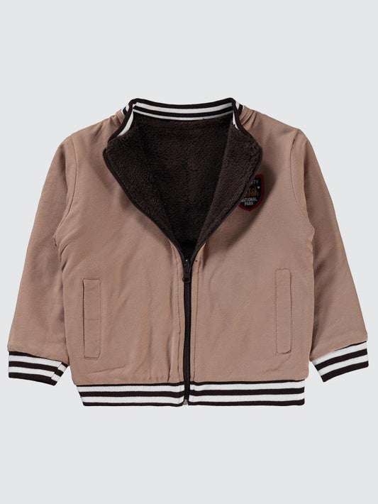 Bizizo w nakışlı çift taraflı 2-5 yaş hırka - kahverengi