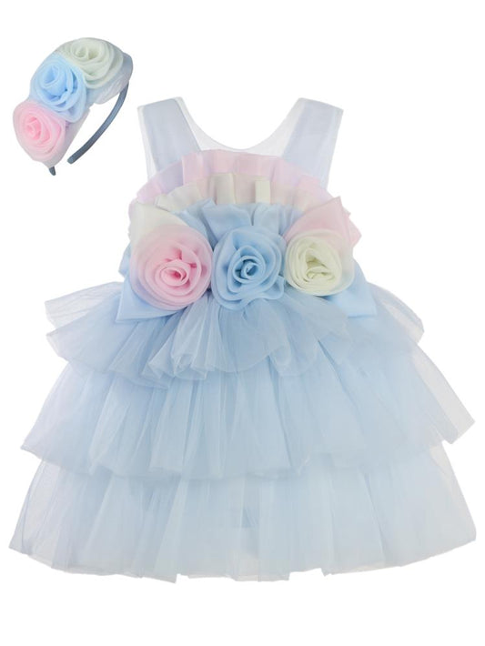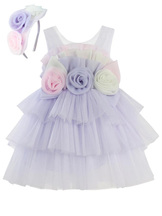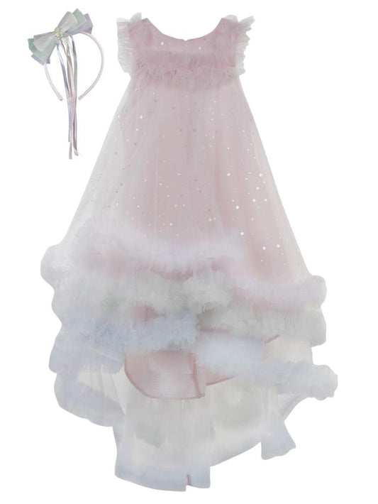 Civil girls kuyruklu çiçekli 6-9 yaş abiye - pembe