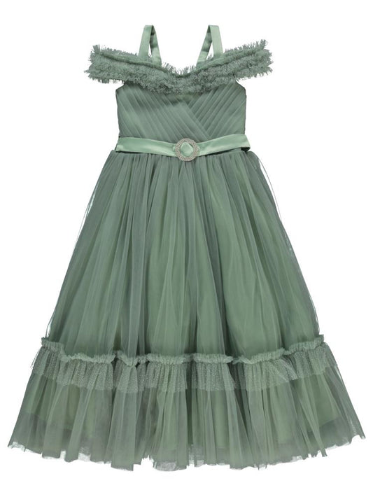 Civil girls yakası fırfırlı 6-9 yaş abiye - yeşil