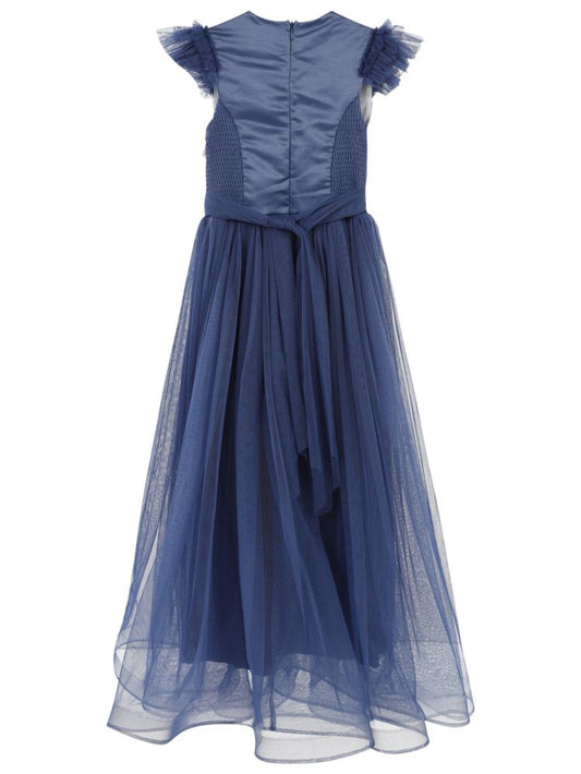 Civil girls robası büzgülü 6-14 yaş abiye - mavi