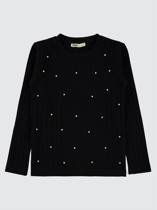 Civil girls stras blouse 6-9 yaş sweatshirt - siyah