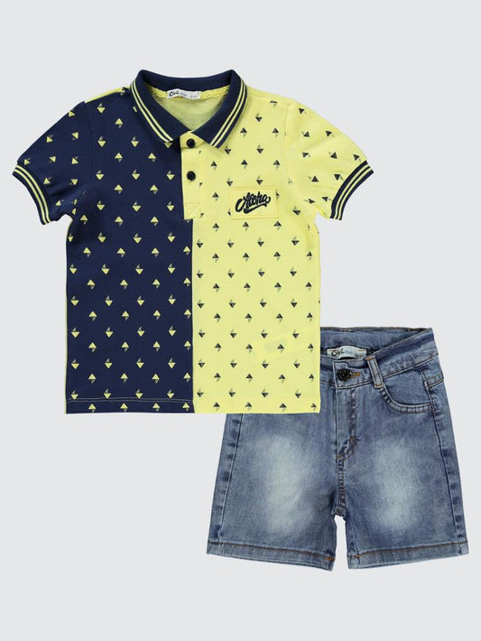 Civil boys dama baskılı 2-5 yaş takım - sarı