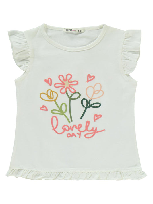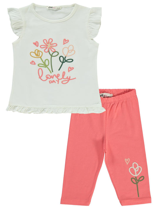 Civil girls lovely day baskılı 2-5 yaş takım - ekru