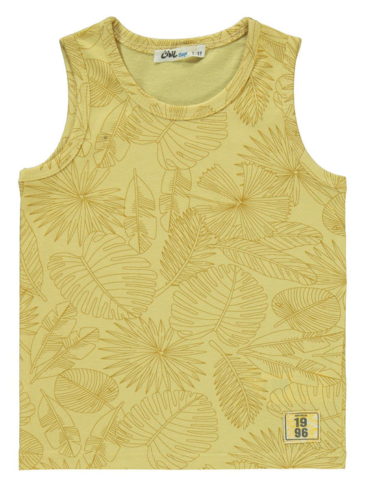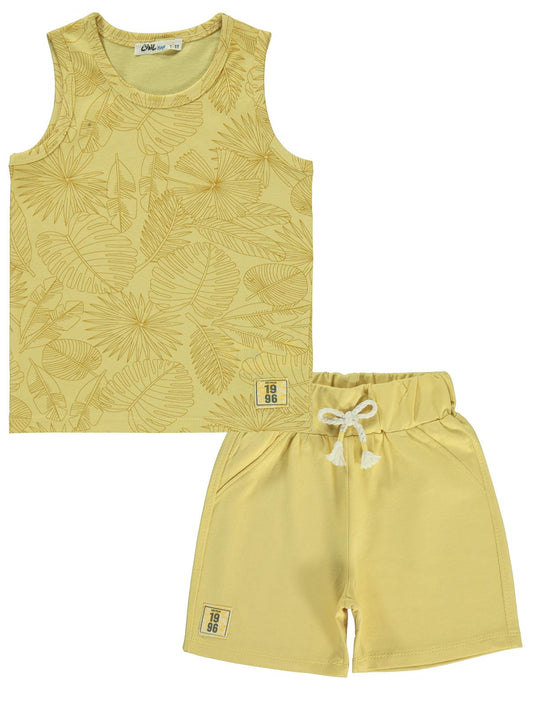 Civil boys yaprak baskılı sıfır kol 2-5 yaş takım - hardal