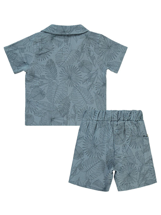 Civil boys yaprak baskılı gömlekli 2-5 yaş takım - mavi