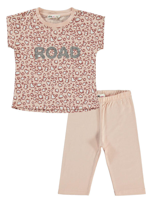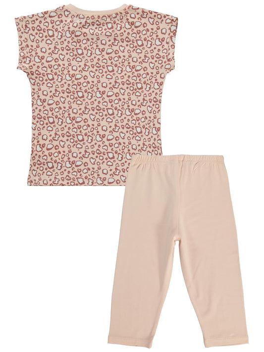 Civil girls leoparlı 2-5 yaş takım - pudra