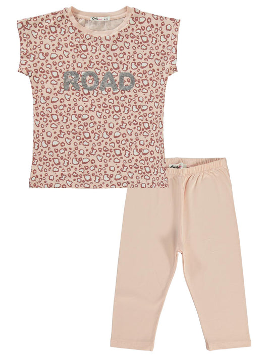 Civil girls leoparlı 6-9 yaş takım - pudra