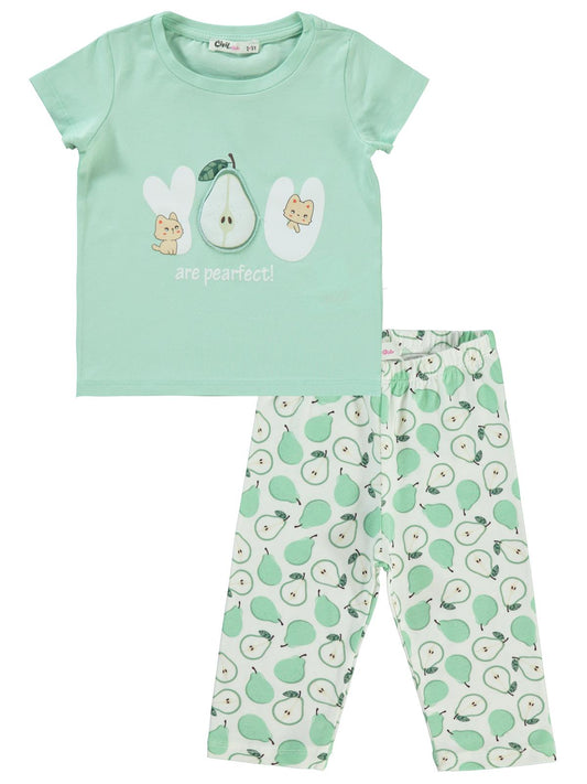 Civil girls meyveler baskılı 2-5 yaş takım - yeşil