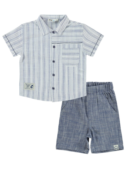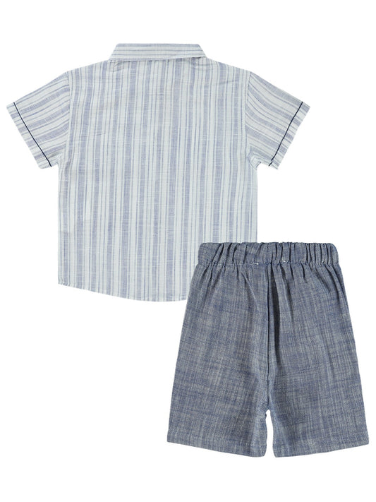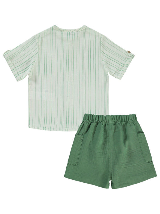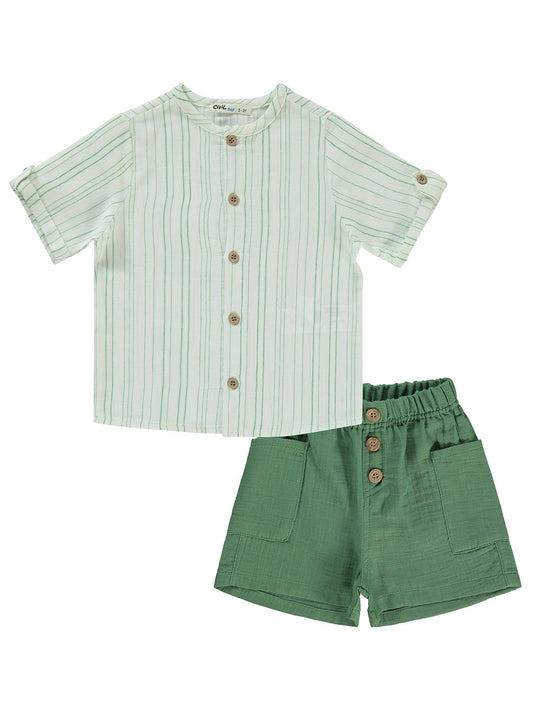 Civil boys çizgili gömlek şortlu 2-5 yaş takım - yeşil