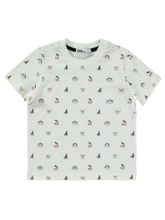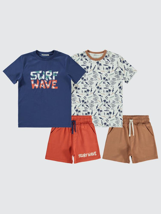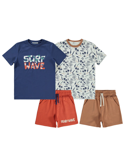 Bizizo summer baskılı bisiklet yaka 2-5 yaş takım - mavi