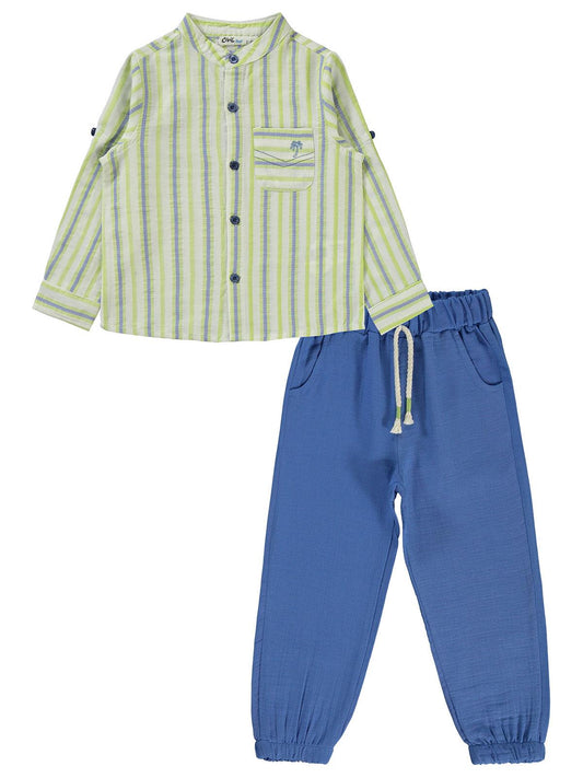 Civil boys çizgili gömlekli 2-5 yaş takım - yeşil