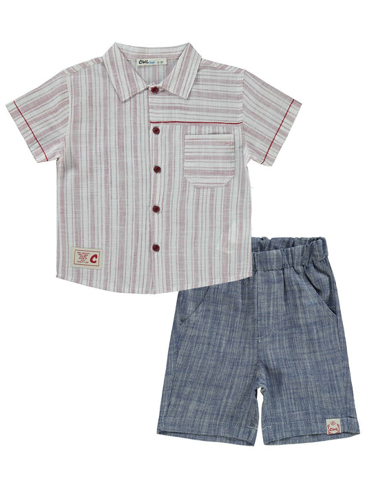 Civil boys çizgili cepli 2-5 yaş takım - bordo