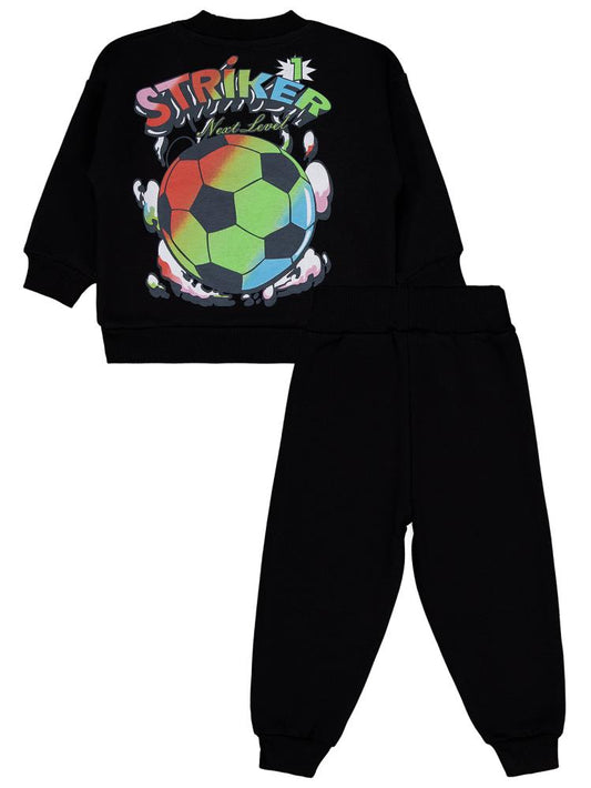 • Civil boys futbol topu baskılı 2-5 yaş eşofman takımı - siyah