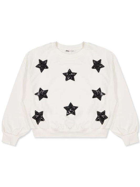 • Civil girls yıldızlar nakışlı 10-13 yaş sweatshirt - ekru