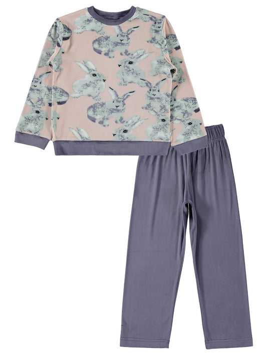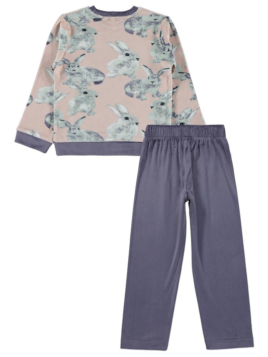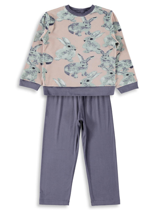 Dorka golsut süpersoft desenli 3-11 yaş pijama takımı - pudra