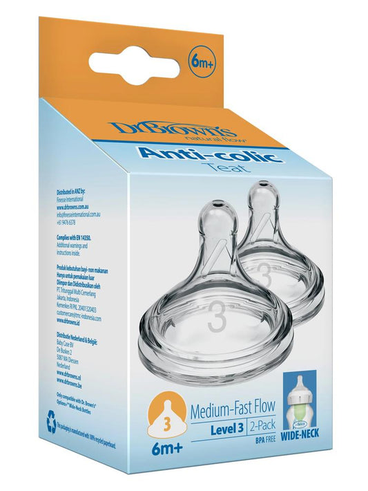 "Benzersiz bir tasarıma sahip olan Dr Brown’ın Natural Flow® Seçenekleri + ™ Seviye 3 Geniş Ağızlı Emzik, biberonla beslemede profesyonel...