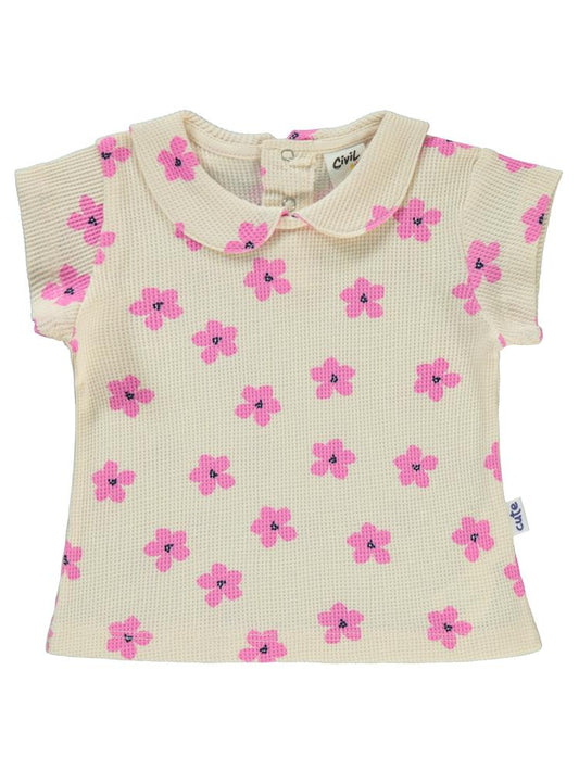 Civil baby çiçek empirmeli 6-18 ay tişört - fil dişi