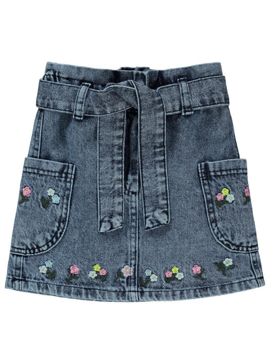 Civil girls çiçek nakışlı kot 2-5 yaş etek - mavi