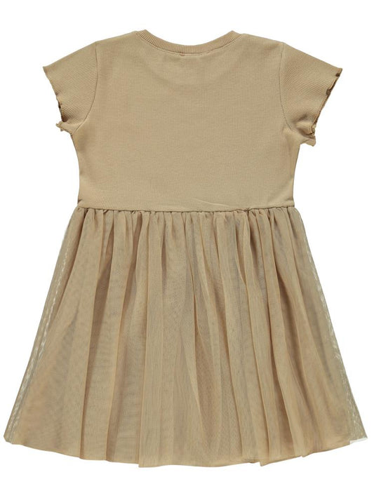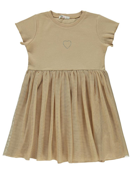 Civil girls kalp baskılı tüllü 6-9 yaş elbise - bej