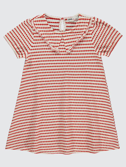 Civil girls 3 boyutlu jakar 6-9 yaş elbise - kırmızı
