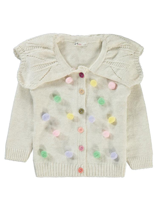 Civil girls renkli ponponlu 2-5 yaş hırka - ekru