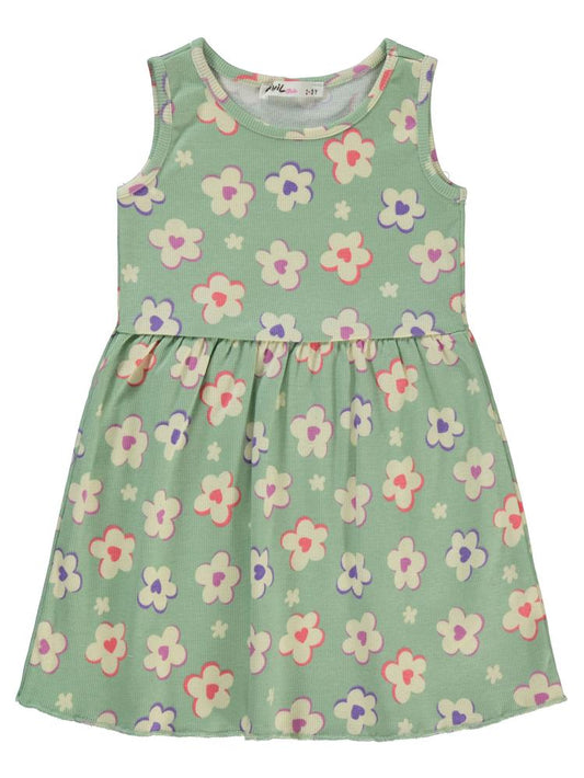 Civil girls çiçek baskılı 2-5 yaş elbise - yeşil
