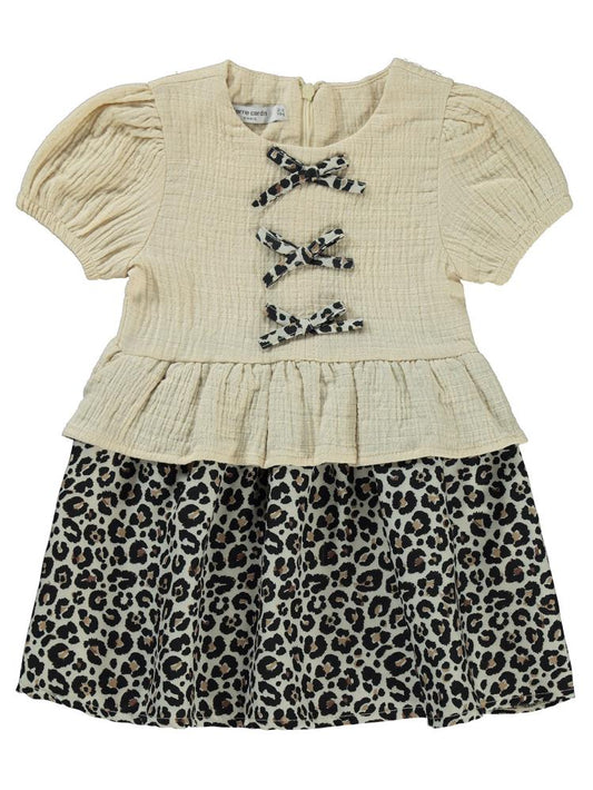 Civil girls kedi baskılı 2-5 yaş elbise - ekru
