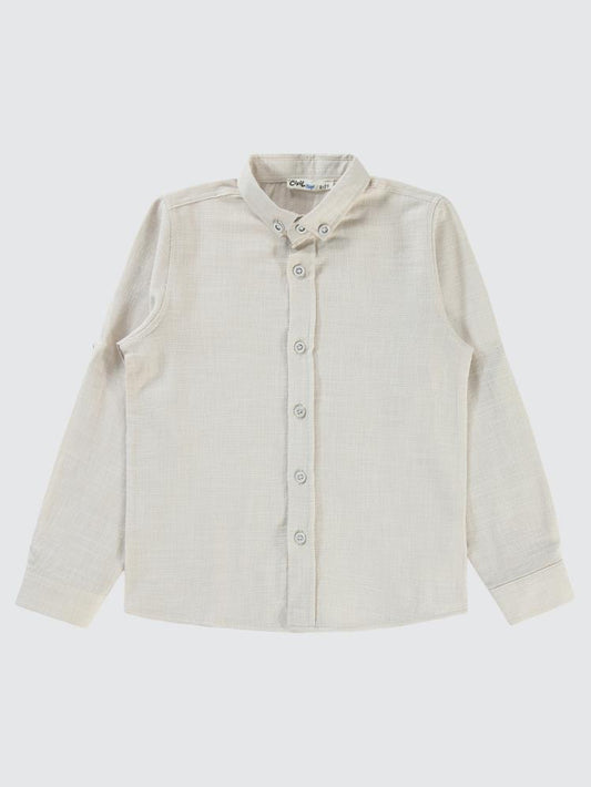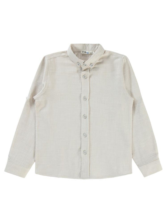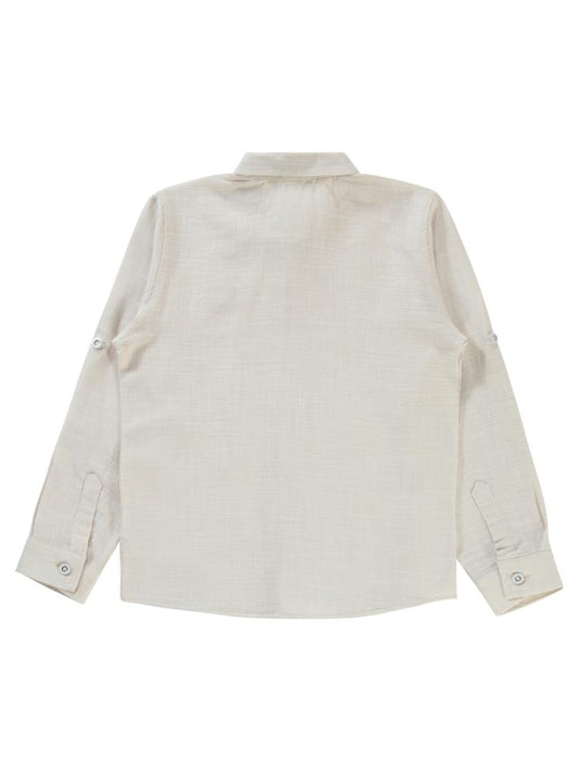 Civil boys yelkenli nakışlı hasır kumaş 6-9 yaş gömlek - bej