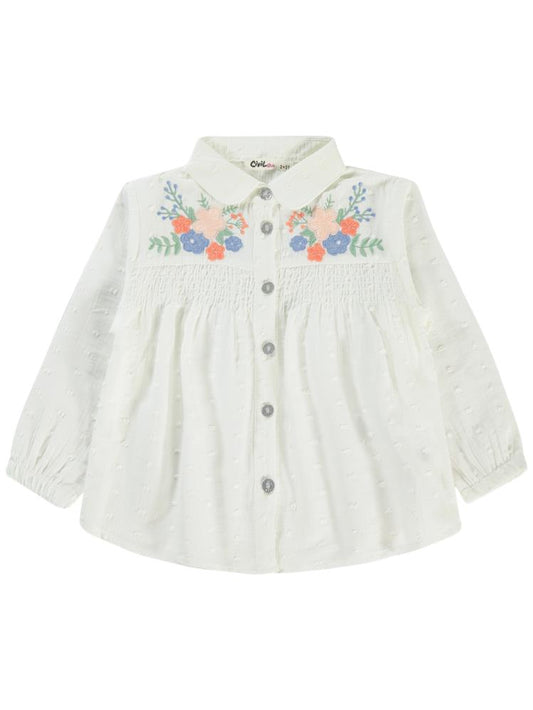 Civil girls çiçek nakışlı 2-5 yaş gömlek - ekru