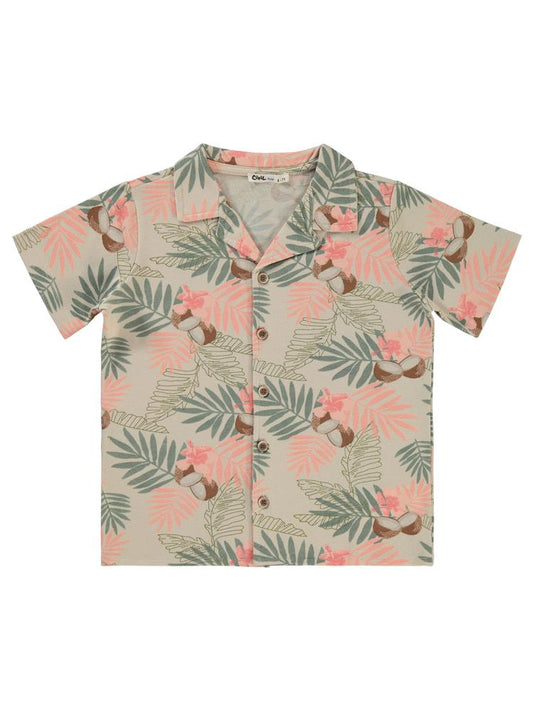 Civil boys yaprak baskılı 10-13 yaş gömlek - bej