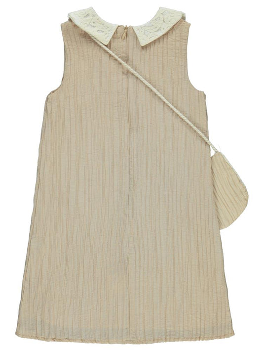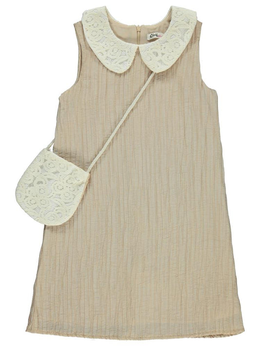 Civil girls yakası dantelli 6-9 yaş elbise - bej