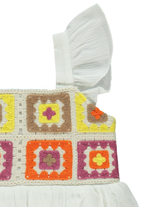 Civil girls roba desenli 6-9 yaş elbise - ekru