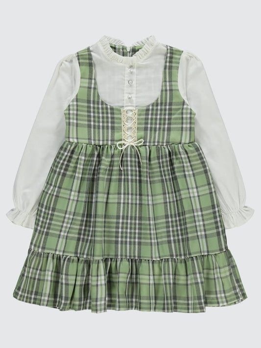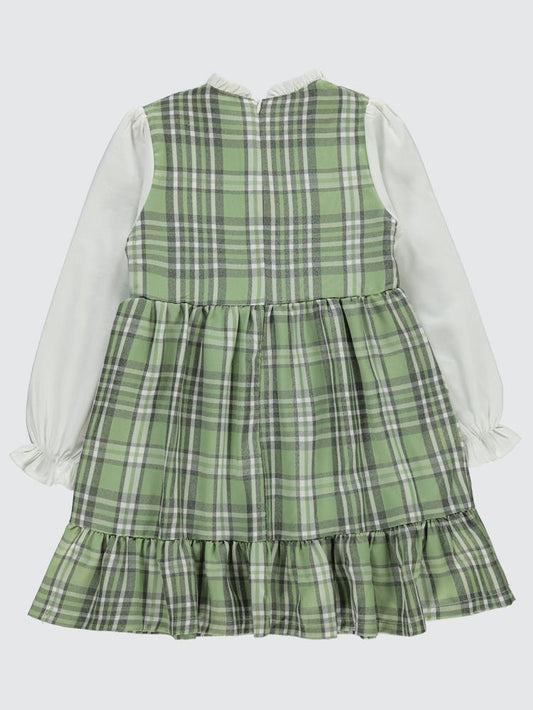 Civil girls yakası fırfırlı 6-9 yaş elbise - yeşil