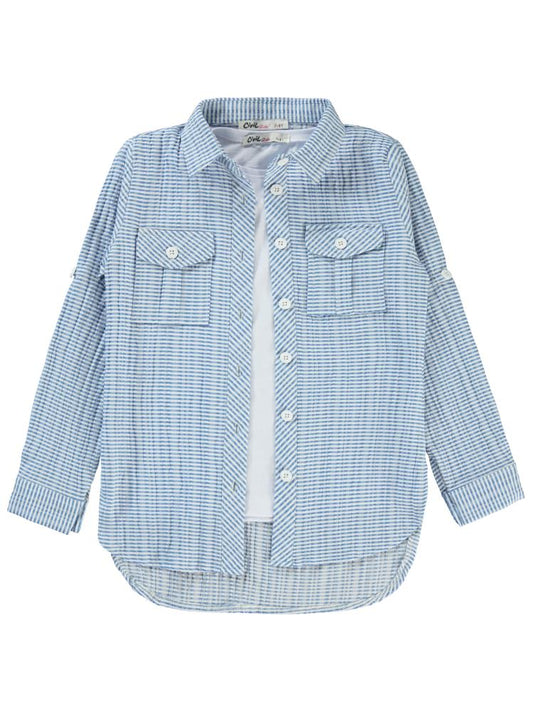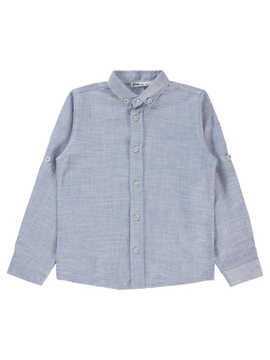 Civil boys yelkenli nakışlı hasır kumaş 6-9 yaş gömlek - mavi