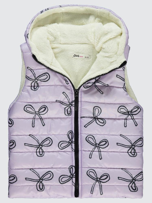 Civil girls velsoftlu fiyonk baskılı 10-13 yaş yelek - lila
