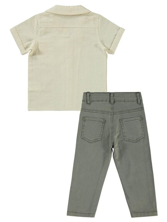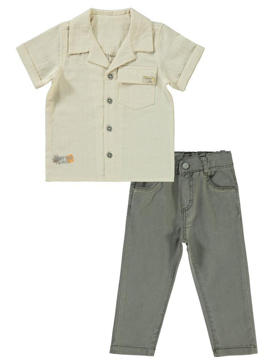 Civil boys yaprak baskılı gömlekli 2-5 yaş takım - hardal
