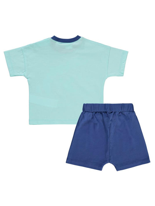 Bombili balık nakışlı şortlu 6-18 ay takım - mavi