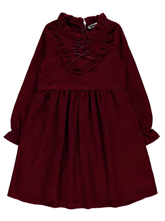 Civil girls yaka fırfırlı 10-13 yaş elbise - bordo